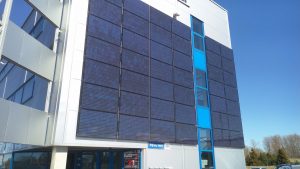 Kā ēkas fasādes konstruktīvo risinājumu. (apmetuma vai dekoratīvo paneļu vietā ir saules baterijas).